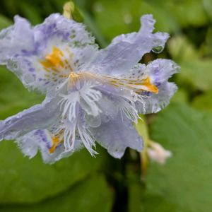 近所の公園は小さいけれど色んな種類の木や花が植えられていて楽しませてくれます。 台風🌀の雨風に揺れるヤブランの茂み。 初夏から晩秋までさき続ける偉い花です! そろそろ雨は上がりそうです☺️
