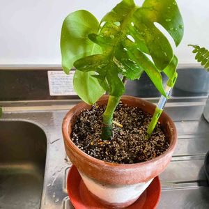 モンステラの気根がこんな事になっていた。 食器皿を受け皿にして、その上に大きくて重い陶器の鉢を載せ、その中にオートミールの空容器で作ったリサイクル鉢を入れていた。 中身は、背が高くなる、黄色の縁取りのあるサンスベリア。今、品種名が思い出せないが、よく見かける種類。 重い陶器鉢にそのまま土を入れてしまうと、重すぎて植え替えの時、扱いに困るという記事を読んだ。 オートミールは1kg入っていた大きな物で、蓋は逆さまにして底に貼り付けてある。 蓋の一部に切掛けを作り、水捌けが良くなるようにしてある。 植物からしたら、せっかく大きい鉢の中にいるのに、根が伸ばせるのはオートミールのリサイクル鉢の中だけという事になるが、 飼い主が筋力無しなので我慢して欲しい。 話を元に戻すと、大きめの受け皿を無料で手に入れたので、食器皿と交換した。 その時発見したのが、この写真に見えるような気根の発展具合というわけだ。 サンスベリアの手前に小さい鉢がいろいろあるので、サンスベリアに水をやった後、受け皿代わりの食器皿から水が溢れなければそれで良いとして、観察してこなかった。 隣のモンステラからは何本も気根が出て、気づくと床を這っていたりしたので、 他の鉢土に潜り込まれると動かせなくなると心配して、 ジョキジョキ切り取っていた。 そのせいかどうか不明だが、モンステラは新しい葉が伸びる一方、古い(下の方にある)葉が黄色くなってしまうので、 それも切り取ってしまっていた。 要はモンステラに対する関心も愛情も冷めたという事だ…。 特に大きくなってくると…。 鉢を持ち上げる体力気力が十分有れば、モンステラの葉に亀裂が入り、大きく育つ事は喜ばしい事なのだが。 三年寝太郎の婆さんが、食っちゃ寝(根?)の根太郎に嫌気がさす…みたいな?😅 で、写真を撮った後、根が潰れるかもしれないが、元どおり重い陶器鉢を載せて、リサイクル鉢に収まっているサンスベリアを中に入れた。 サンスベリアも水を控えているので(観葉植物の育て方というよりも、受け皿から水が床に溢れるのが怖さに)、 サンスベリアの気根もあまり水を得られないと思うのだが、 前述通りモンステラが何度も気根を出すのは、私が推定していた、植物体を支える為というよりも、 単純に水やり不足なので水を求めていたという事かもしれない。 で、モンステラに関して、では(最適な選択肢としては植え替え・鉢増し)どうするかというと、 …このままなのであった。 ちょっとつげ義春の『李さん一家』みたいな感じで、始皇帝、じゃない思考停止する事にした。(毎度のこと)👍