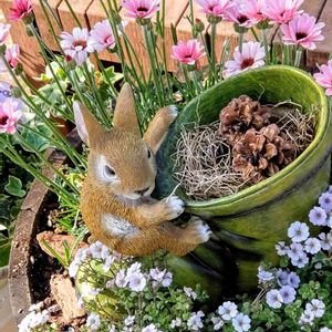 ローダンセダムの寄せ植え🩷💗 可愛いウサギさんとの コラボが可愛い作品でした~🐰💕小さなお花も可愛く咲いてました✨ カーペットカスミソウ🤍🌿 (オノエマンテマ)でした~✨ カナガデンにて