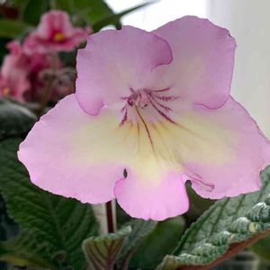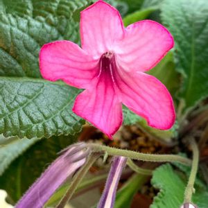 ストレプトカーパス原種アイラエ 小さめのお花です 今回は原種2種類買いましたが、どちらも葉の産毛がもさもさで、改良品種とは手触りが全然違います😆