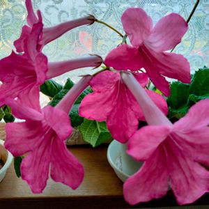 ストレプトカーパス・ラックホフ 日射しの弱い時は出窓に置いて日を当てたら、花の模様が出てきたよ💕
