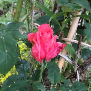 レッドレオナルドダヴィンチ、咲きましたぁ🌹 他の子より、咲くの遅めなのよね😃 この長雨で、散っちゃいそう…。