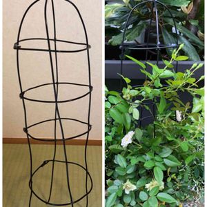 ミニバラ用のオベリスクを針金で作ってみた🌹 性格が歪んでいるので、オベリスクも歪んでる😅 バラを巻き付ければ目立たない❗️ ミニバラさん頑張って❣️