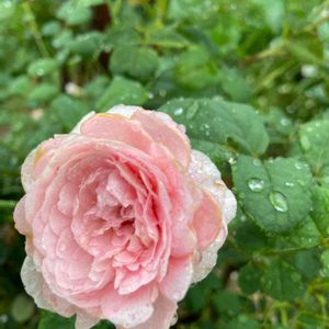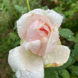 淡いピンク。 香りは、石鹸。 雨粒が、いっぱいです。