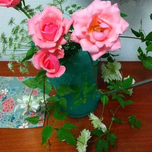 おはようございます。 バラ🌹とクレマチス、昨日大雨☔️予報だったので、カットしてきました。