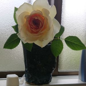 バラ マネとクレマチス ギレナスのツーショット。どちらも鉢植えなので無理矢理くっつけて撮りました。 なかなか同じ時期に撮りやすい位置で咲かないですね…