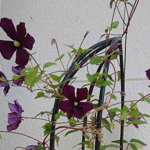 これはモンタナ系の白洲だったかな? 旧枝咲きなので枝を誘引しなおすのが大変だったー