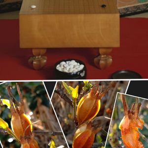 💛山梔子の実💛 夕陽が当たって綺麗❇️でした🤩 碁・将棋盤の脚は、 山梔子の実を模したそうです🧐 観戦者の口出しはご法度‼️ クチナシお口チャック🤐 脚付きの盤は音の響きも良いそうです(^^)v 山梔子の実は6角、 縁起の良い八に因んで脚は8角との事です🌟 6角にも見えるけど…💦