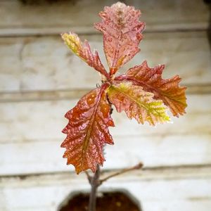 バーオーク(クェルクス・マクロカルパ)の若葉。てっぺん以外からも葉を出してくれるといいのだけど。