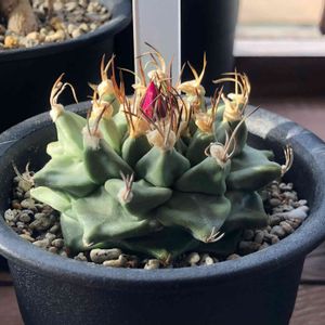 ハゲ散らかったような棘が 心に刺さり、お迎え。 ツルビニカルプス・グラキリス。 こういうサボテン好きかも。