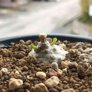 ホリダ 発根管理 水耕管理20日目でで微発根確認後、 赤玉土に植え替えて、 腰水管理で30日目を迎え、 外に出して、毎日水やりで40日目。 頭頂部に動きが見えた。 多分抜根した模様😁
