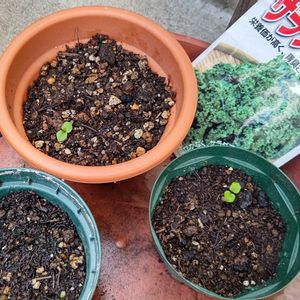 肥料の問題でしょうか? ふたつだけ少しずつ成長しています♪ 雑草だったらどうしようと少し不安(^_^;) #イタリア野菜モニター #カインズ