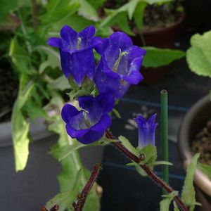 💖実生のカンパニュラ 100均の種から こんなにも立派な花が 💜のカンパニュラは苗から 満開の時に油断して水やり 忘れて夕方には殆どの花が 枯れてしまって これだけ残って咲いていた 二番花に期待して直ぐに✂️ 小さな蕾が見えて来てる