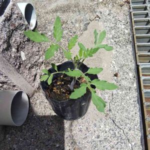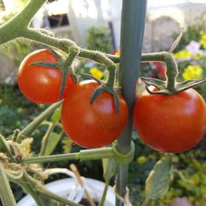 洗濯機のゴミ取りから発芽しており、なんとなく育ててきました。名前がわかる方いらっしゃいますか? 【2019.10.11追記 「名前を教えて!」タグにて投稿していましたが、コメントにて回答してくださった方々の仰るとおり、ミニトマトだったことが確定いたしました。@かなかな さん、@navy さん、回答ありがとうございました】