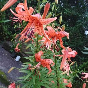 オレンジリリー 緊迫した大雨で忘れてた 七夕の短冊🎋を思い浮かばされる百合。。