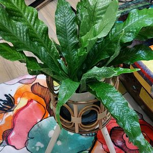 ミクロソリウム・ムシフォリウム クロコダイルファーン🐊 6月19日(木) 植え替えました。土は無機質、鉢はダイソー底面給水ポット6号。鉢ちょっと大きかったかも…。 葉垂れ防止リングつけてあります。