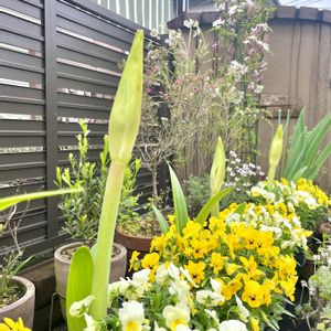 アマリリス♡ 今年はビオラさんと 寄せ植えにしてみました♪ 元気いっぱい ニョキニョキ顔を出してます \(*´∇`*)// 霜降り肉模様(!?)の大きなお花 今年はいくつ咲いてくれるかな♪