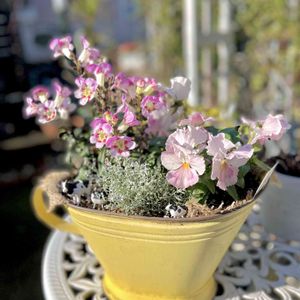 寄せ植え♡ ポップな花柄が可愛いキンギョソウ プレミアムパンジー カロケファルス・プラチーナ & ウシさん親子♪ 初売りセールの花苗たち♡ まだまだ順番待ちのコが たくさんいま〜す٩(^▽^)۶