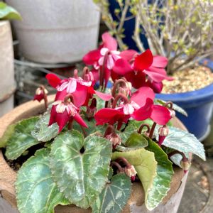 シクラメン♡ジックス 2年目のジックスさん♪ ほぼ1年中 車庫暮らし… けっこう強いコなのでしょうかᕦ(*^▽^*)ᕤ 無事に夏越しして たくさん花を咲かせ始めました♡