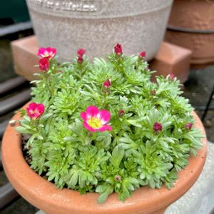 真上から撮ってみました♪ ① クモマグサ♡ お花の数が増えました。 ② ラナンキュラスの寄せ植え♡ キラキラお目目が可愛いです。 2月のはじまりは 雨降り… カーポートの中で 花仕事\\(*´꒳`*)/です♪