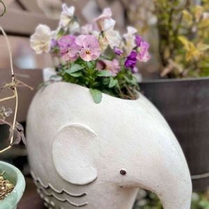 フリル咲き小輪パンジー♡ペルクレア 外は冷たい雨降りですが ゾウさんのアタマには 春がきてま〜す \(*´∇`*)/♪