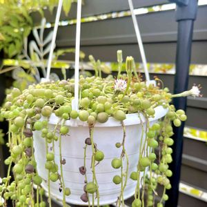 グリーンネックレス♡ 軒下で越冬中のグリネさん♪ お花が咲き始めました〜(*´︶`*)〜 んん? …コケも一緒に育ってるよ。。