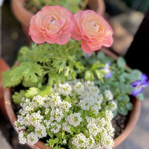寄せ植え♡ 大寒波が来るらしいので 車庫に避難させてます \( ̄◇ ̄;)ノ=3=3=3 アネモネ・ビオラ・アリッサム