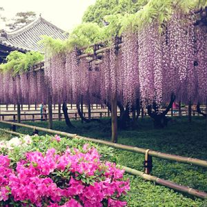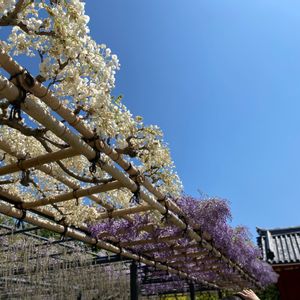 いつものウォーキングコース 平等院表門前藤棚へ 咲き始めました❣️ 今年は早い
