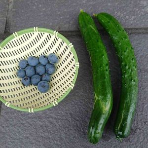 今朝の収穫🥒 ブルーベリーは今年初 ヨーグルトをかけていただきました😋 午後からもぼちぼちガンバりましょ😊✋