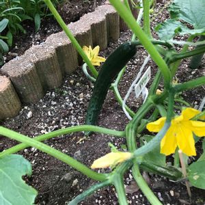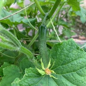 畑のきゅうりがだいぶ成長してきました✨ 今日もお花をひとつ咲かせ、その下にはまだ花がらをつけたままの小さなきゅうり😆小さいながらしっかりきゅうりらしい姿をしてくれています🥒 今年は畑のスペース問題により、例年より遅い植え付けだったのですが、元気に成長してくれていてうれしいです😊 ここまできたら、今年の初収穫も近いかな? 楽しみです💕