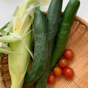 きゅうりを初収穫❤️ 長雨続きで、収穫が遅れ、こんなに大きくなってしまっていました😂 明日みんなで収穫しようと思っていたのに、雨の止み間に帰宅した夫と息子に採られてしまった😓 息子がニコニコで、「ママ見て〜😆」と抱えてきてくれたので、よし!です😊 明日の冷やし中華の具にします🎶😋