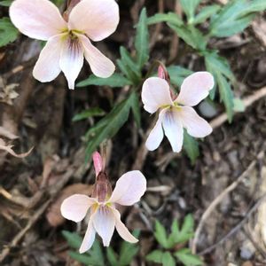 「エイザンスミレ(叡山菫)」 比叡山で発見されたことからこの名前がつけられた。 葉っぱの形に特徴があってすぐわかる。春菊の葉っぱに似てる? 白色から淡い紅色のものがありこの花は白っぽい。 香りがあるというがよくわからなかった。 別名:エゾスミレ(北海道には分布しなくて、訛った?) 🌺言葉:茶目っ気 2020.3.24