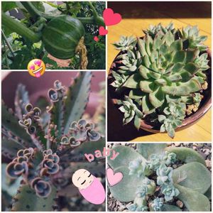 不死鳥の子どもたち 夏の暑い日に真ん中の親株が枯れてしまい チビちゃんたちが残りました。 こんだけ群生すると一個一個の成長は少しずづなのでまだかわいいですね。 大きくなるとちょっと気持ち悪い感じになっちゃうから… このくらいがちょうどよい。