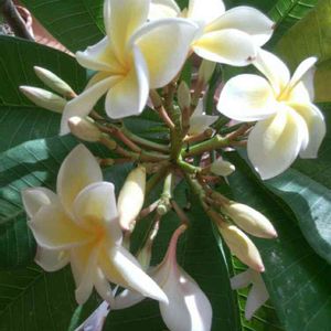 「プルメリア」 花も日毎に少なくなって 蕾もわずか🌼 なが~い間楽しませてくれました(3ヶ月位) お疲れさま…… (*´∀`)♪