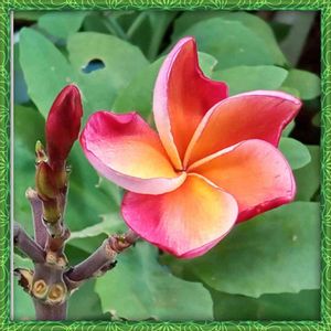 プルメリア この間のツボミが開きました。 昨日撮りました。 おはようございますm(_ _)m 今日は☁☀マークです。