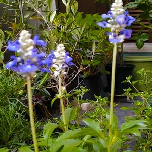 寄せ植えを解体した時に、リシマキア・ペルシャンチョコレートを残し、ブルーサルビアを植えてました😊 やっとブルーサルビアが咲いて来ました😊