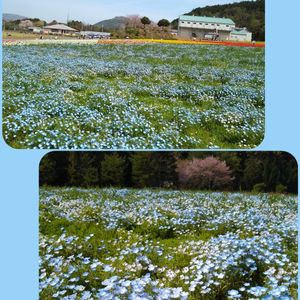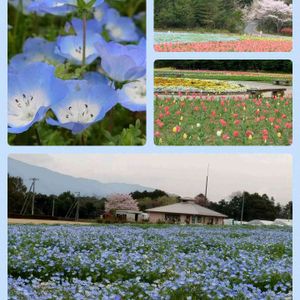 こんにちは(*^▽^)ノ お城🌸*・へ行った帰り、毎年行く 大洲フラワーパークに寄ると 【ネモフィラ】がとても綺麗に咲いていました(*´︶`*)💙゚*。 チューリップ🌷は、まだ蕾が多かったかな…