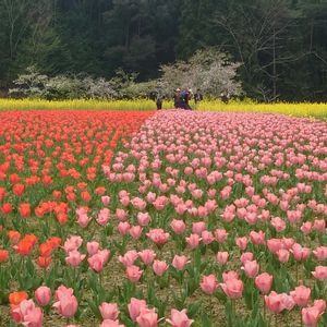 連投失礼します。 ソメイヨシノ 大洲フラワーパークにて。 菜の花、チューリップとの コラボが素敵でした。💗💛💚