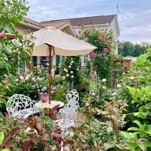 2投稿目です☺️ 群馬遠征の際 まきちゃんのお庭もお邪魔させて頂きました❣️ 10日にオープンガーデン開催でしたが行かれず… 誘って頂き嬉しいです😆🎶 まきちゃんのお庭は… バラバラバラ🌹🌹🌹 育種もしてるとかで とにかく凄いバラの数‼️ 人気のバラや河本さんのバラももちろんあります😍 ③ 私の好きなナチュラル風なところもあります🥰 オルレヤとダフネってすごく合いますよね〜😍 その横にもずらっとバラ🌹 ④ わ🎶 『アイズフォーユー』の花数凄い‼️ こんな風に咲かせたいなぁ🥰 ⑤ ガーデンテープルで アフタヌーンティー🫖 好きなミント(モヒート)を摘んでアイスミントティーを作って頂きました❣️ 爽やかで最高に美味しくておかわりしちゃいました🤭 過去一美味しいお友達手作りのカヌレも頂きました🤩 ササッとなんでもできちゃうまきちゃん ジャム作りも天才✨ 手作りのハーブソルトもめちゃ美味しくて… 売って欲しいと言ってます🤭 素敵なお庭を見させて頂き お土産も沢山ありがとうございました❣️ ごちそうさまでした😋