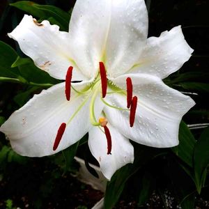 おはようございます🙋💓 カサブランカ⚜️の花 がやっと咲きました😉👌 でも🤔今年は肥料が足りなかったのか⁉️ ひ弱で茎も細く花数も少ないんです😞残念