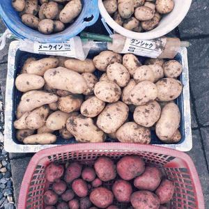 こんにちは👋😃 昨日🎵じゃがいも🥔 掘りました🙆 今年は梅雨入りが早かったので😅 腐ってないか⁉️心配 でしたが😉👌大丈夫 ダンシャクとメークインを一袋ずつと❗ 食べ残りの紅いも4つから😆こんなに✌️ 一輪車一杯?とはいきませんが😁‼️