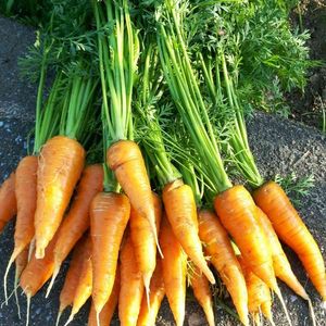 昨日🎵人参🥕収穫しました😁👌 昨年よりは大きく育ちましたよ🙆 腐ってなかったけど 1本虫に食べられてました😅