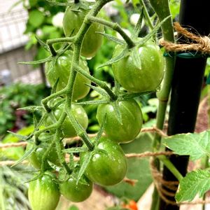初めてのミニトマト。 虫もつかず、どんどん育つ、フォルムも可愛い。癒し。