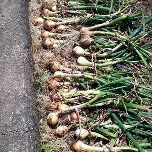 今年の玉葱😊👌 ダイソーの種から撒いて育てた😁初めての 収穫🎵大小合わせて 200個あったかな🤔 極早生の苗は買って 早目に収穫しました😉👌 途中葉腐れ病にかかって大変だったけど🎵