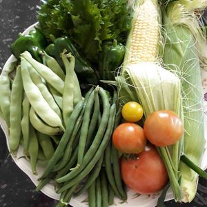 おはようございます🙋 我が家の畑😆❤️ 夏野菜の収穫祭😋💕 ダイソーの種から平インゲン豆や弦無しインゲン豆出来たよ〰️🎵