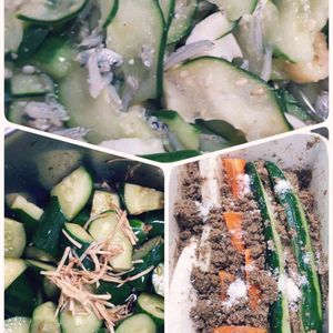 こんにちは👋😃 今日は😋✌️胡瓜🥒 三昧作ってみました🤣 我が家の🥒はぼちぼちですが😅叔母から頂いた沢山の胡瓜🤔 酢の物💓きゅうちゃん漬け💓そして糠漬けにと😁👌 今❕旬の胡瓜🥒を沢山食べましょうね🎵