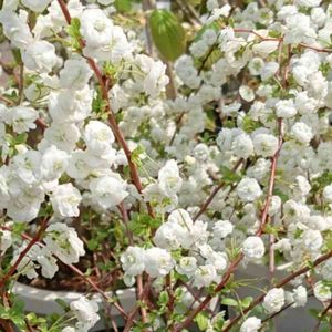 近縁の雪柳に似ています 八重咲きの白い花🤍 花には雄蕊雌蕊が無く タネはできません。 ※花の様子がシジミの身に 似ている事から〰︎ この名が付いたそうです🎶 蜆花(しじみばな) 別名 こごめばな バラ科