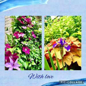 クレマチス(ダッチェスオブデジンバラ)は満開を過ぎましたが‥長老の2色のクレマさん達と・同じく長老のコアヤメさんが咲き出しました♡