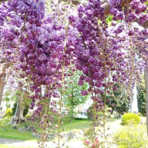 05月06日(火) おはようございますo(^▽^)o🌅 今日のお花は、フジ(藤)です。 左側:赤藤、右上:八重黒龍 右下:白藤わ