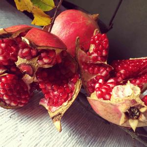 お隣のザクロ、分けていただきました。 大きく口を開けたザクロ、この時期は毎年飾りたい❣️ お隣のお父さん、毎年ありがとうございます😊